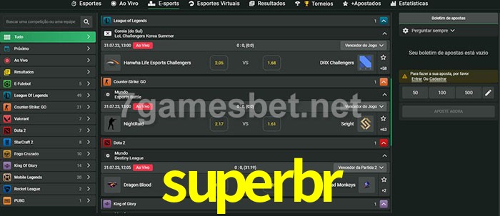 O superbr oferece uma grande seleção de opções de apostas em e-sports com probabilidades competitivas
